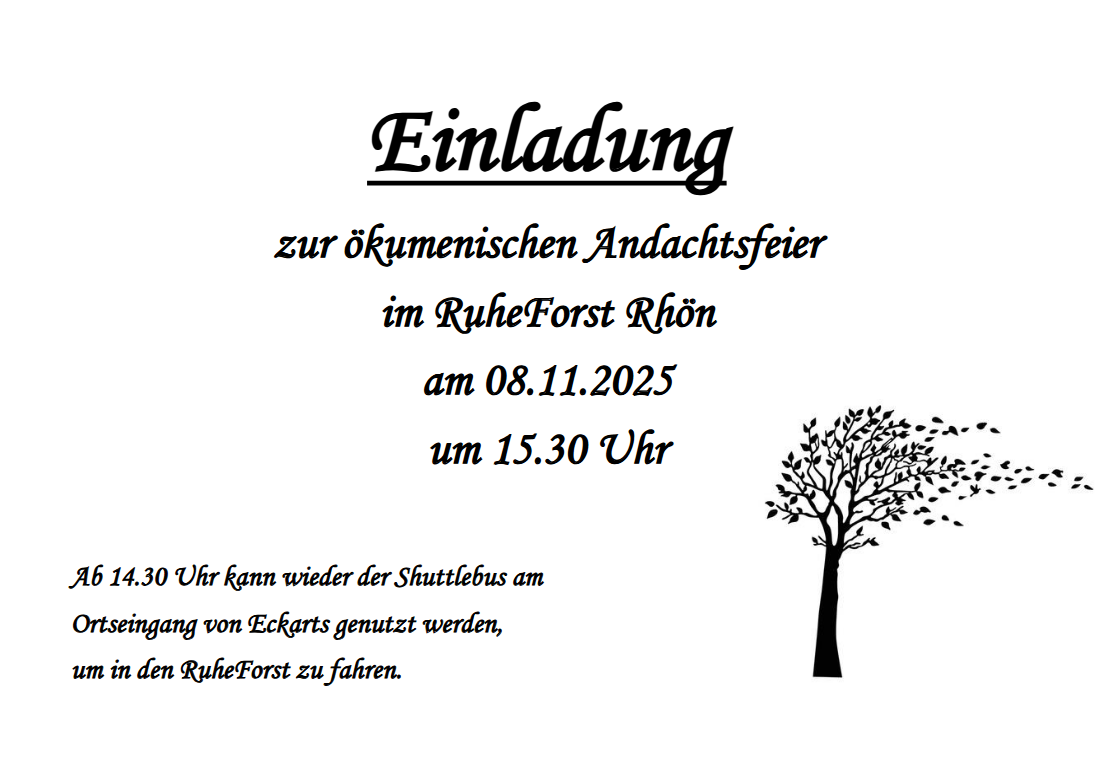 Bei uns im RuheForst finden Sie eine Alternative zu den herkömmlichen Bestattungsformen. Die letzte Ruhe in der natürlichen Umgebung des Waldes zu finden, ist für viele Menschen ein schöner und beruhigender Gedanke. Der Wald strahlt Ruhe und Harmonie aus. Sein jahreszeitlicher Wandel zeigt uns die Dynamik des Lebens und läßt uns immer wieder Neues entdecken.